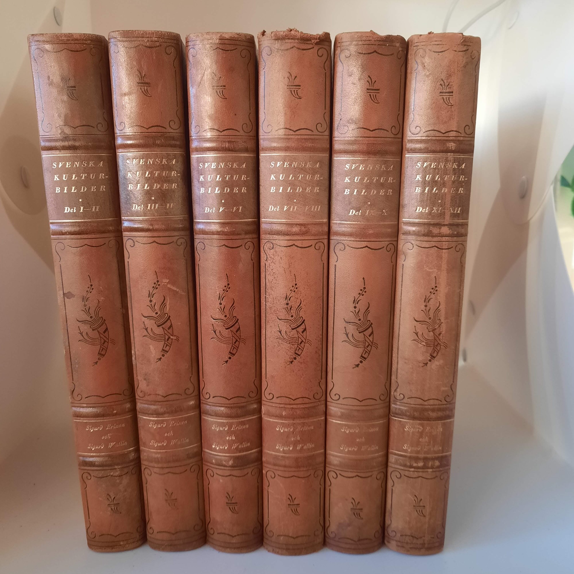 Bokserie av Sigurd Erixon och Sigurd Wallin inbundna i halvfranska band, övre guldsnitt. Två band i varje volym, totalt sex band.  Antikvaristiskt nyskick! Aktiebolaget Skoglunds Bokförlag, Stockholm 1929 ff