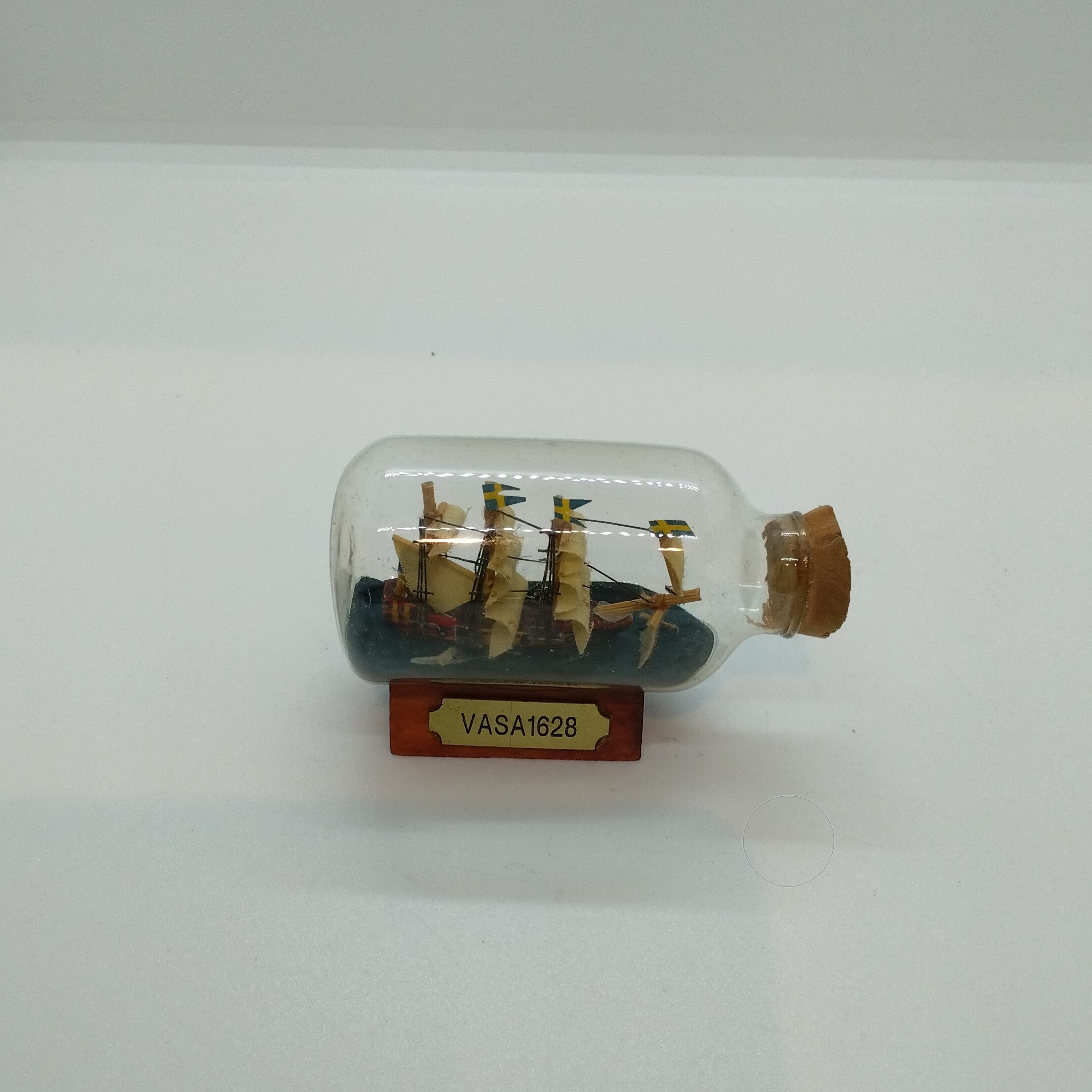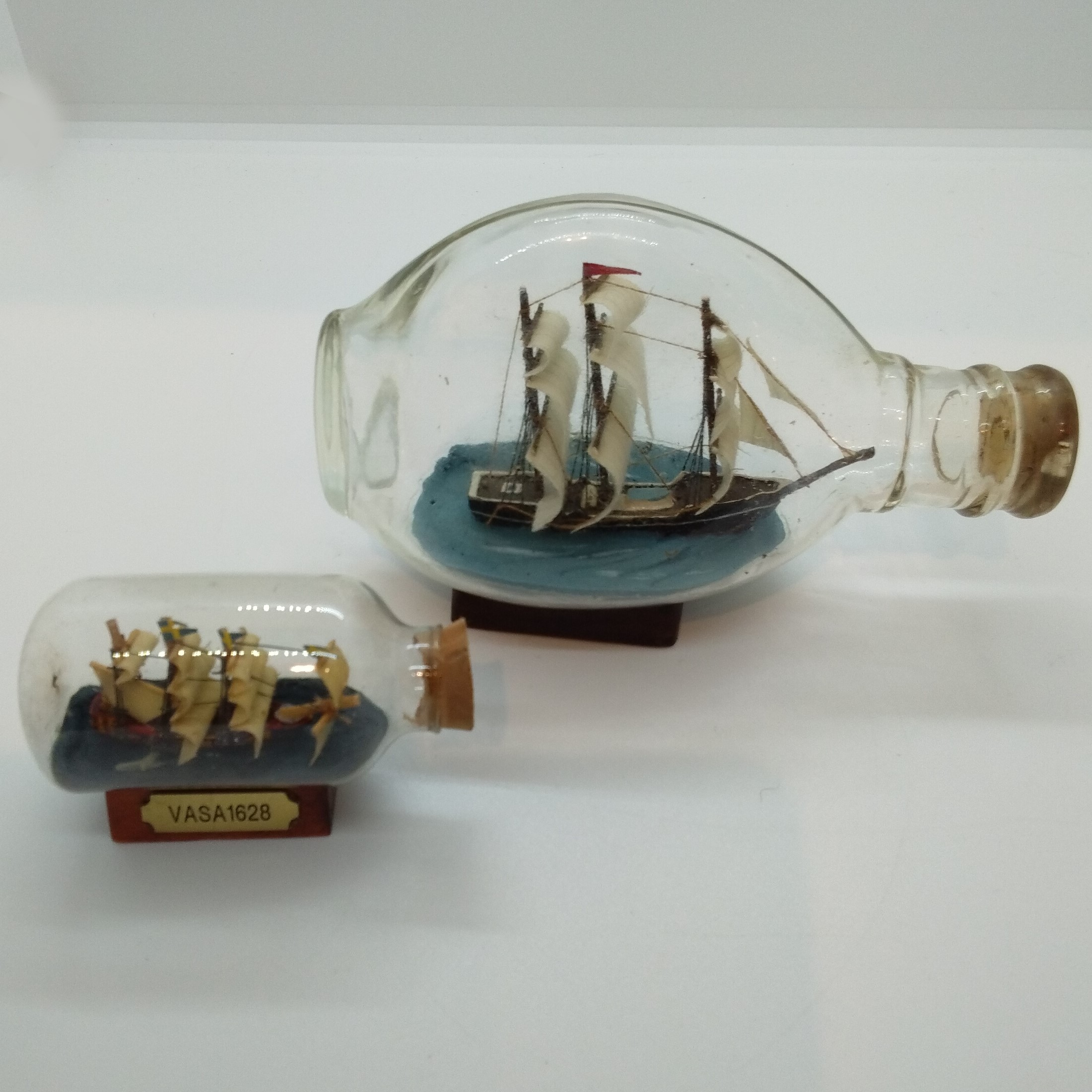 Två stycken flaskskepp, 13*8 cm samt Vasaminiatyr (6,5*4,5 cm), 30:-/st