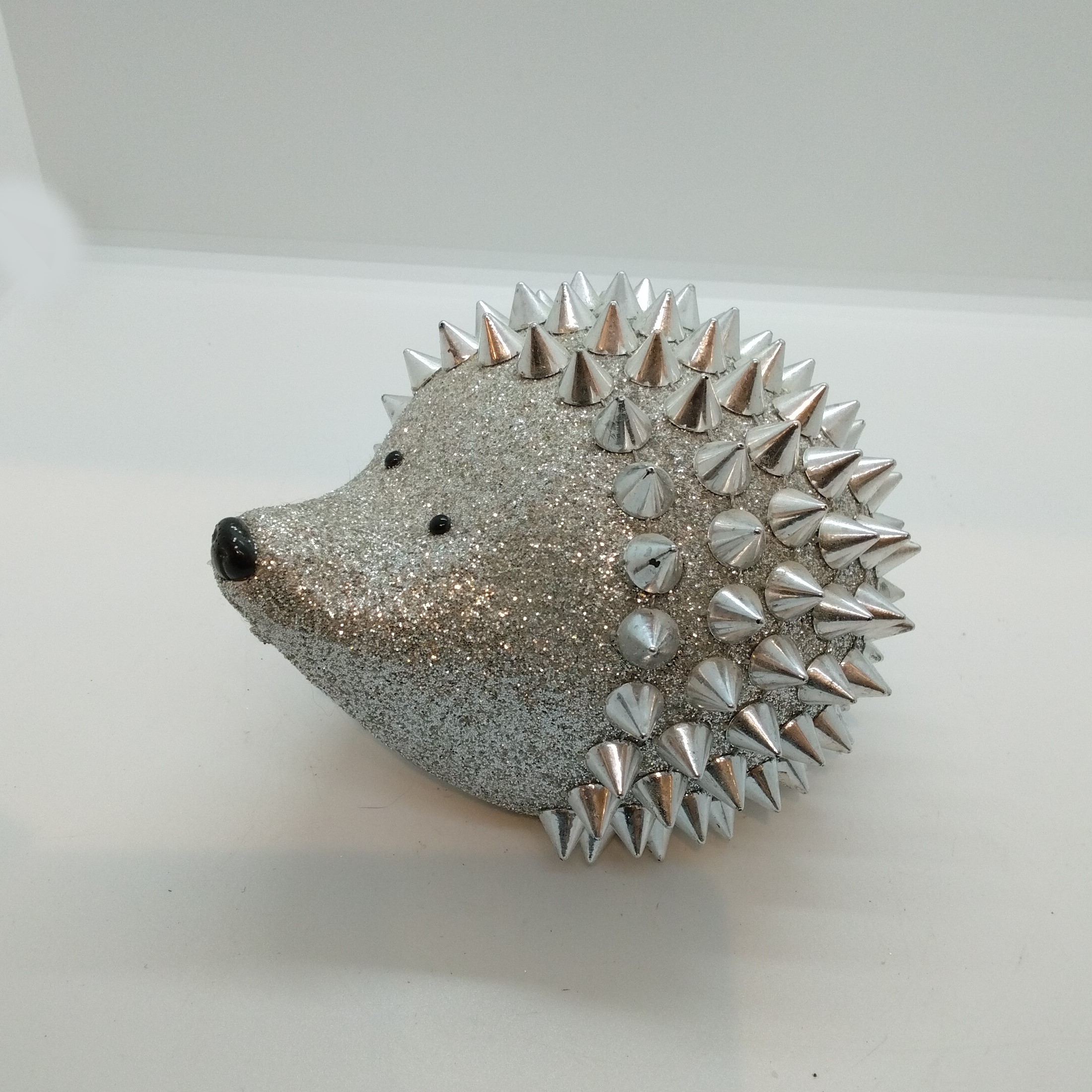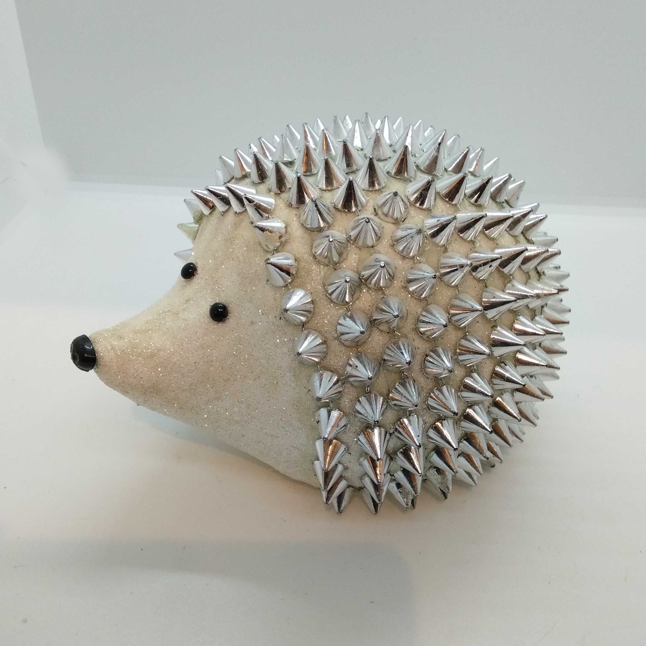 Igelkottar i frigolit med piggar av silvernitar, 10:-/st