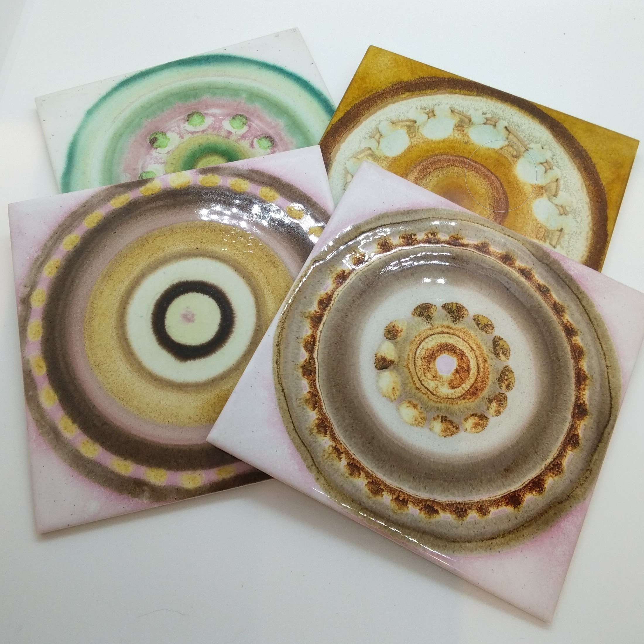 Kakelplattor från Tjeckoslovakien, fyra st i olika färgställningar