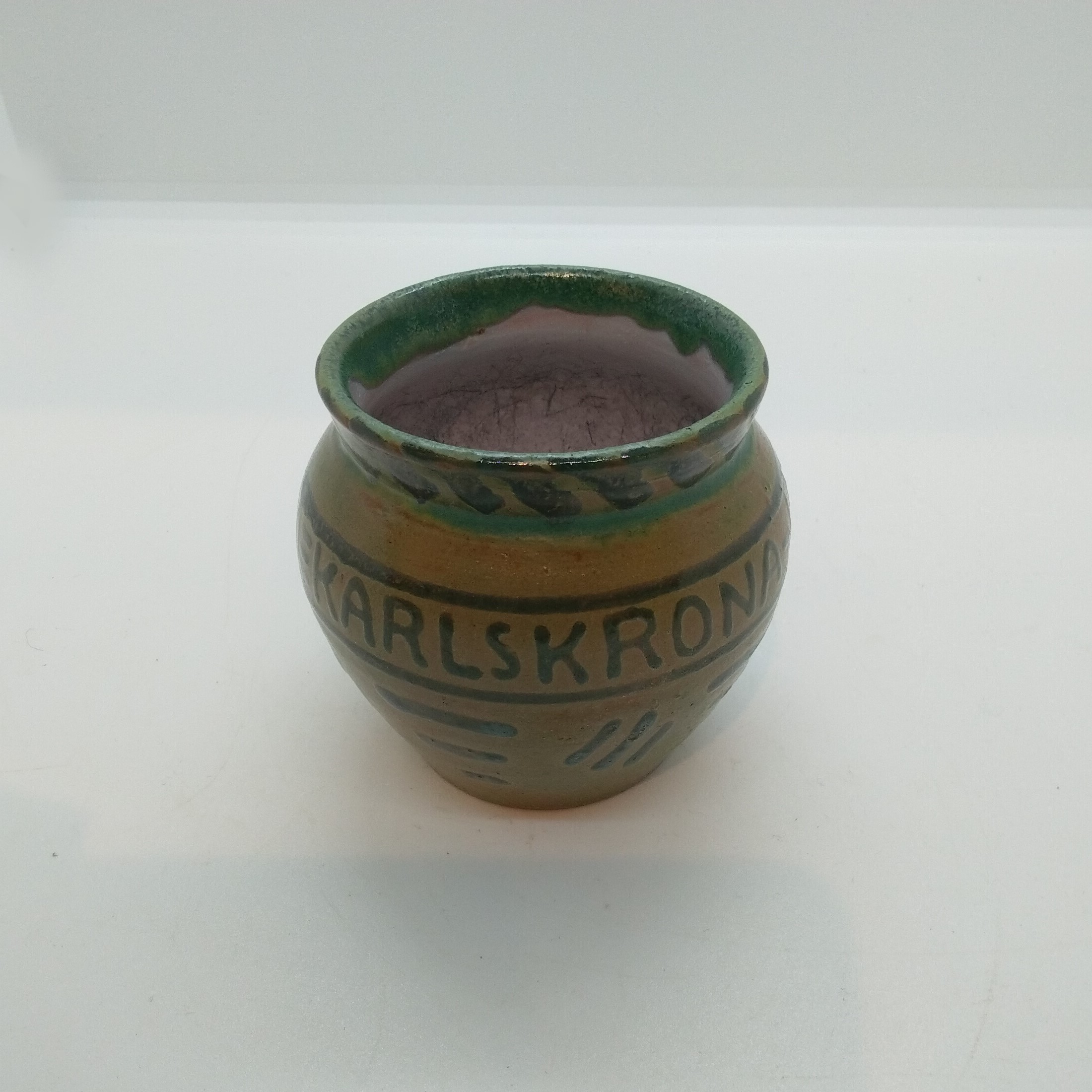 Litet ”souvenir”-krus Karlskronautställning 1680-1980, höjd 7,5 cm, ø 7 cm, felfritt!