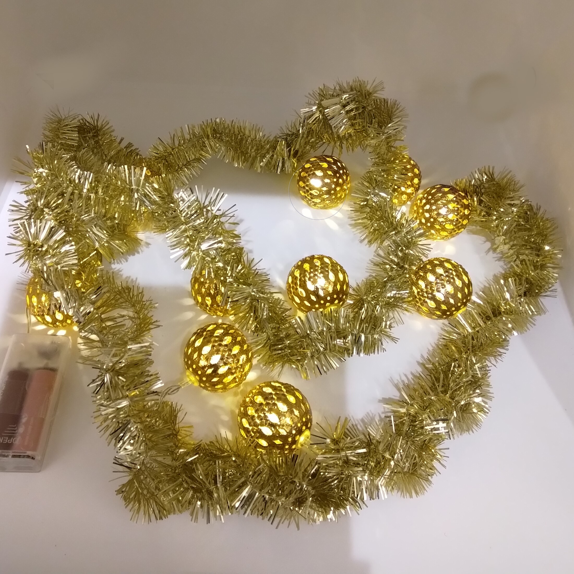 Ljusslinga för batteri (AA), glitterklädd, genombrutna mässingkulor.