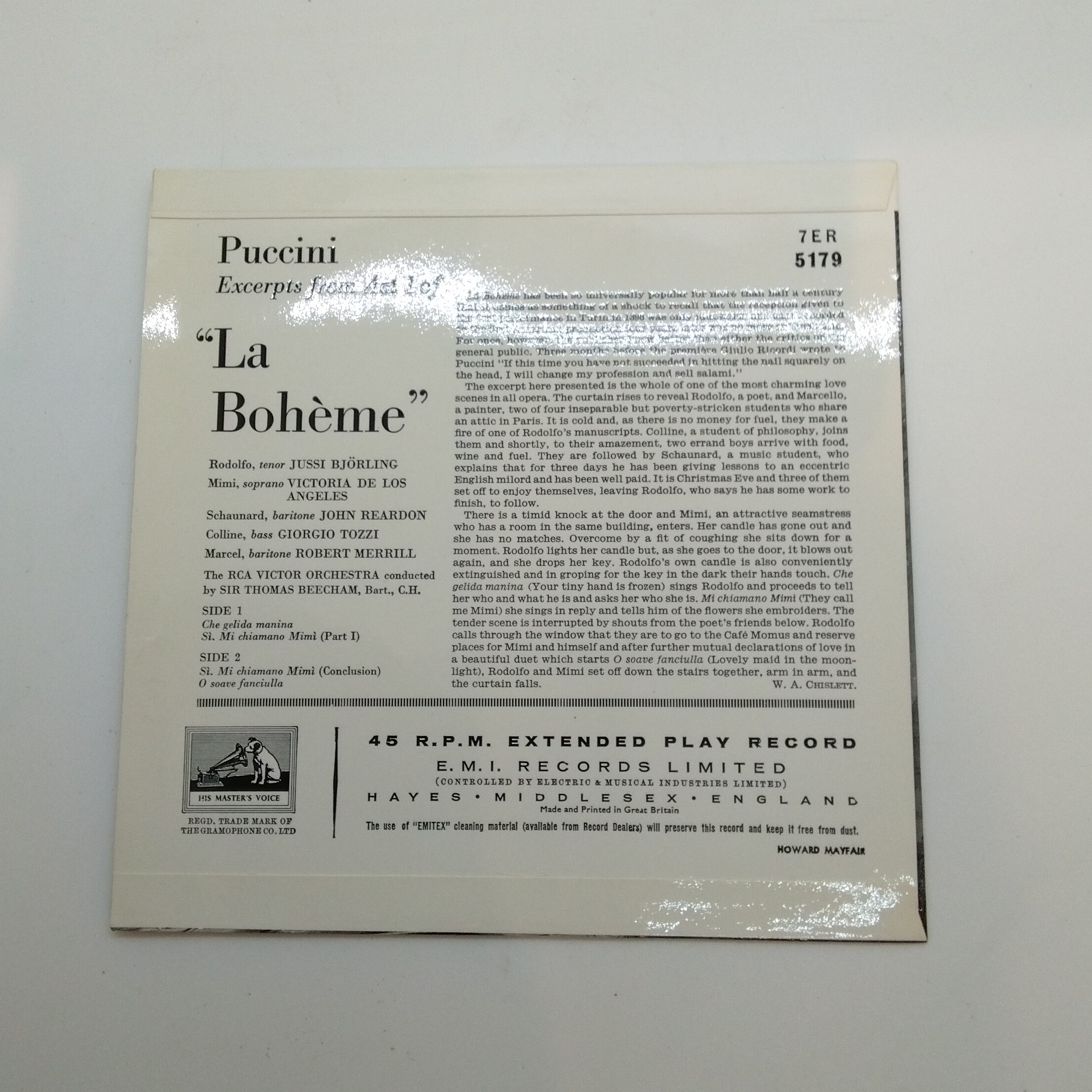 Singelskiva Piccini – exerpts from act 1 of ”La Bohème” m bl a Jussi Björling