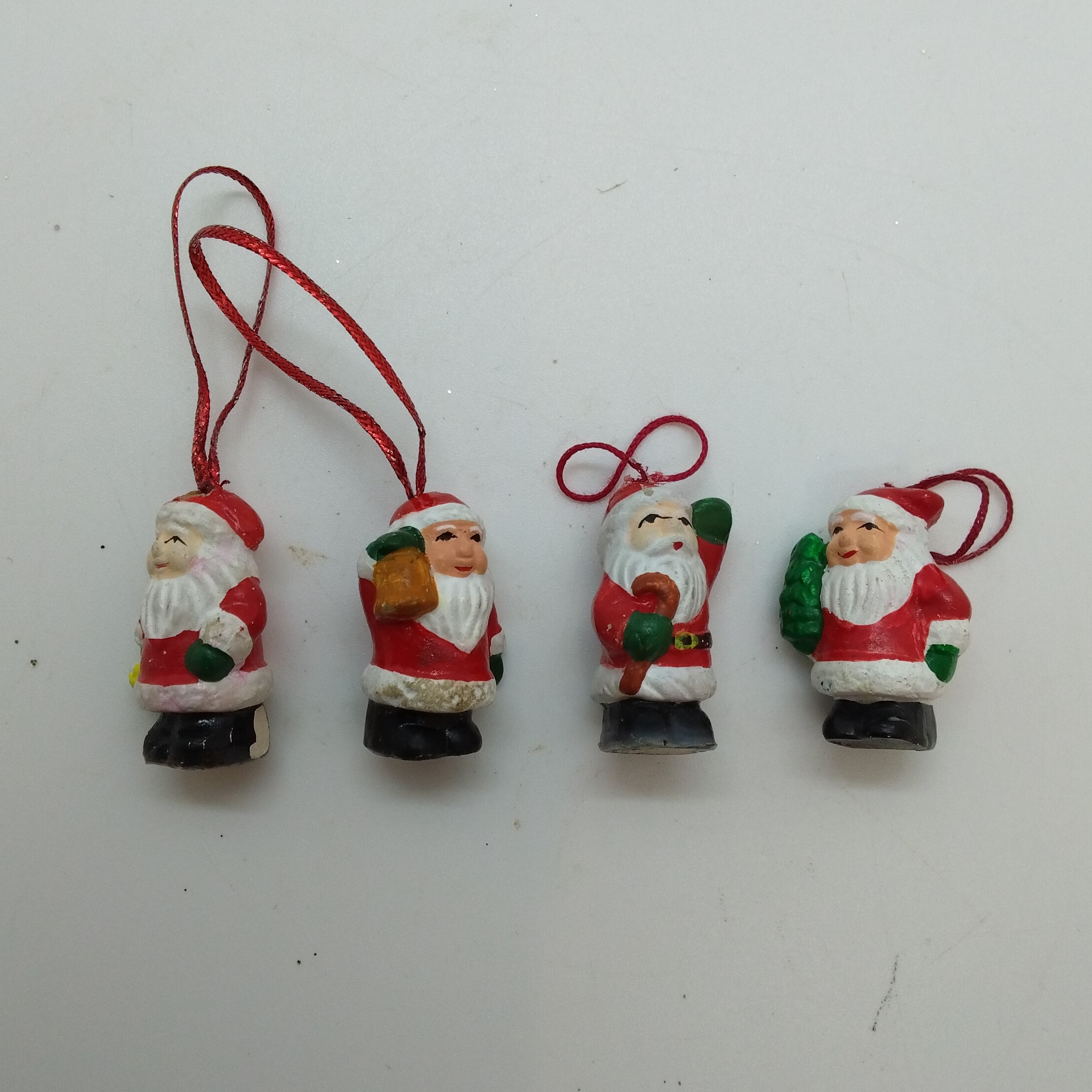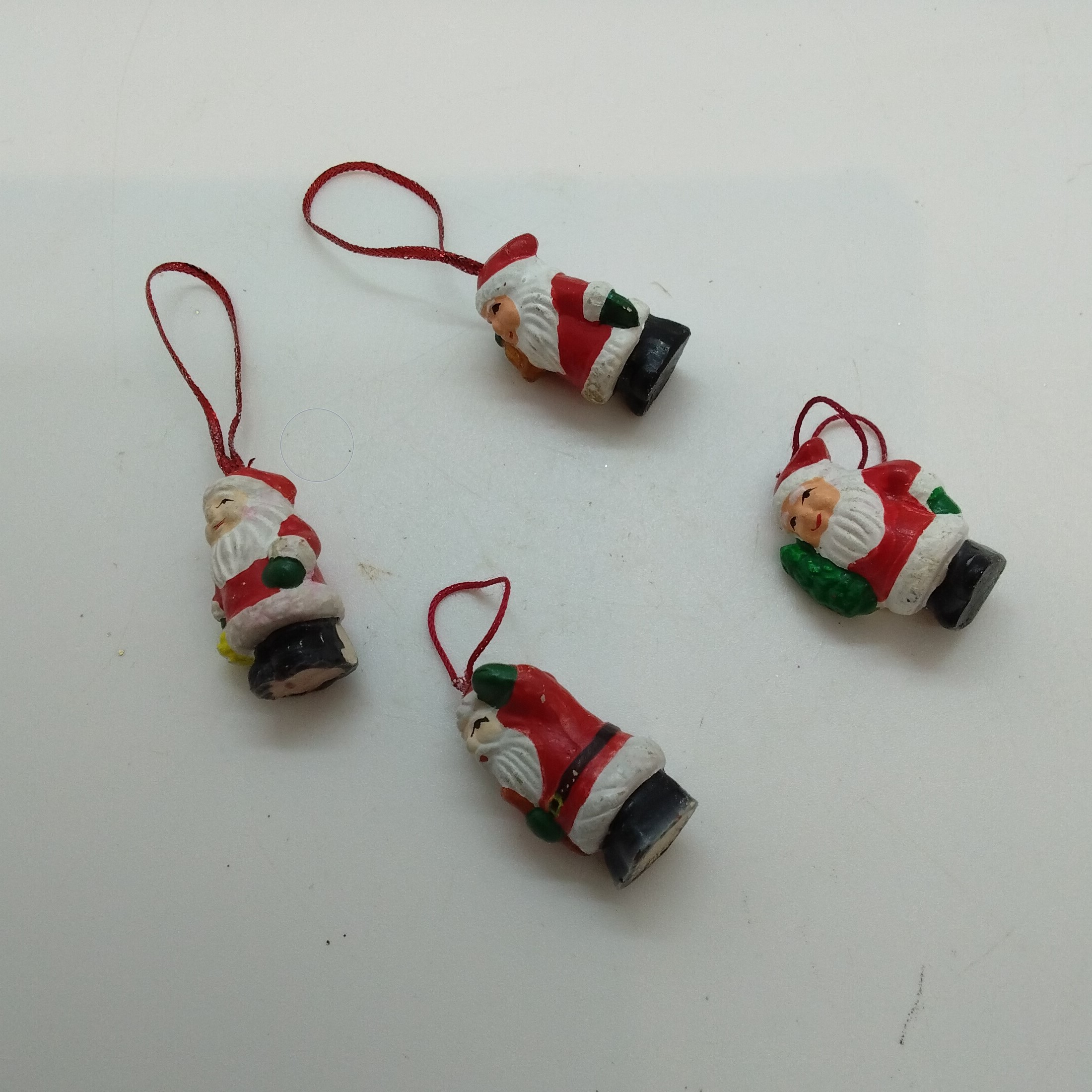 Fyra st små tomtar att hänga i minigranen. Höjd ca 3 cm, 10:-/4 st