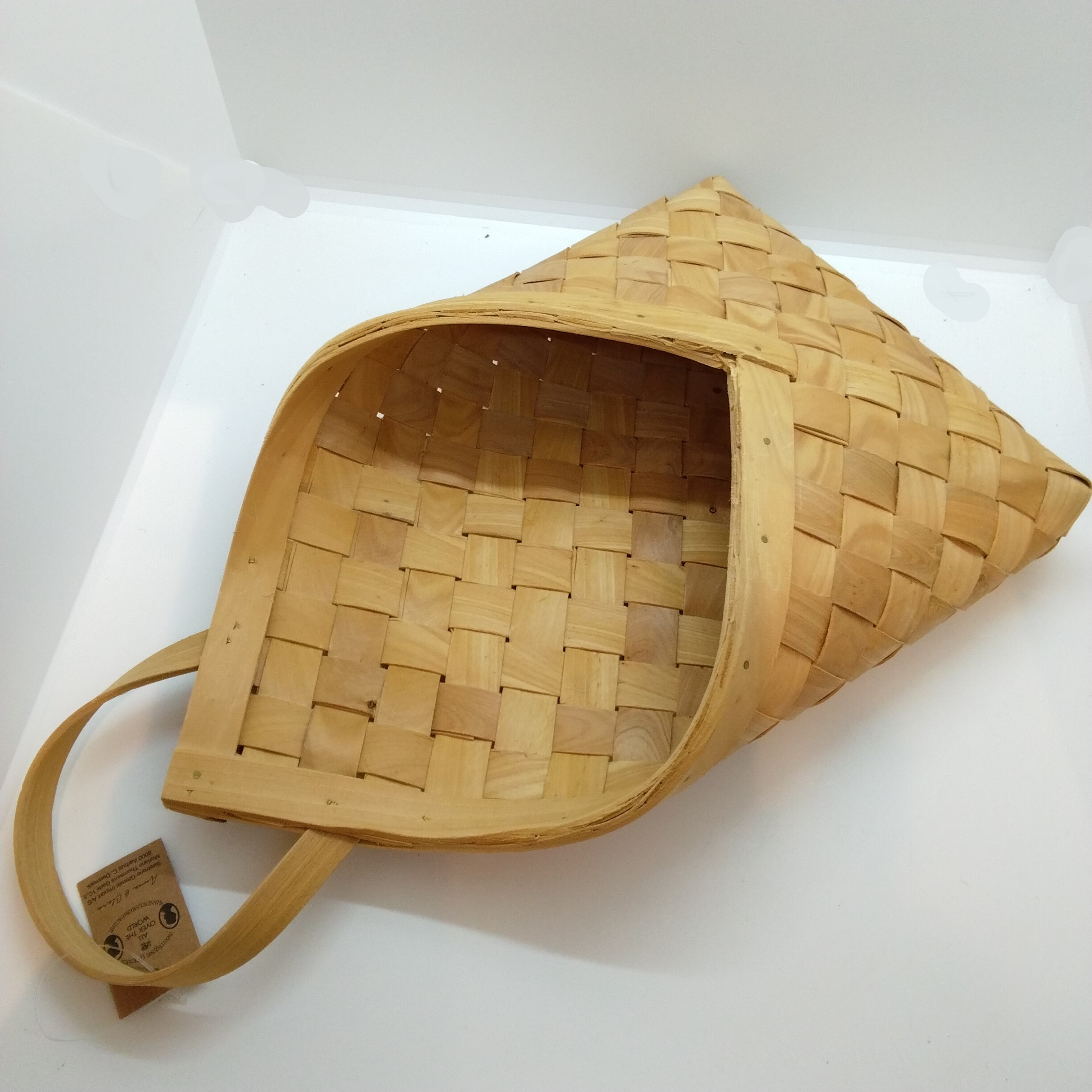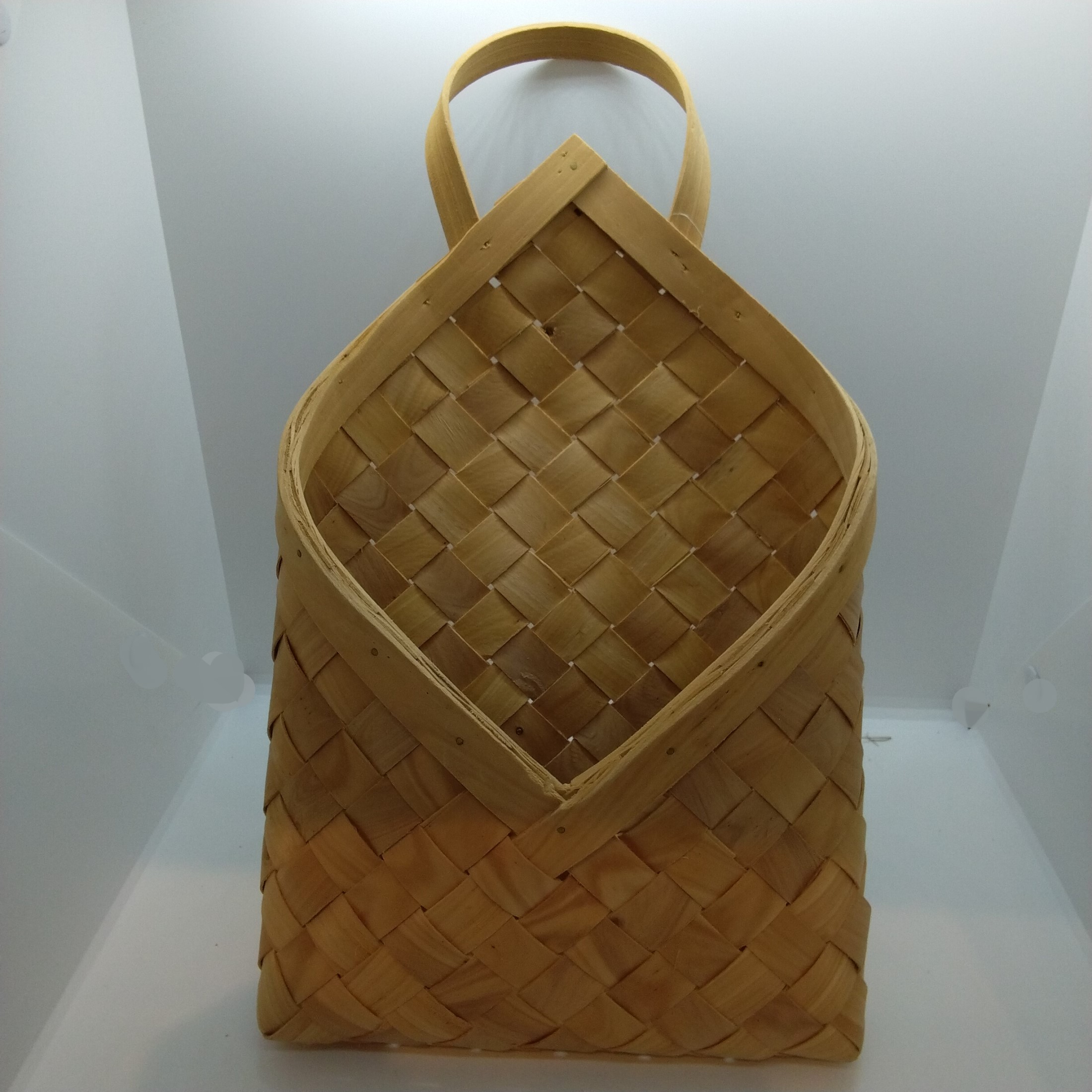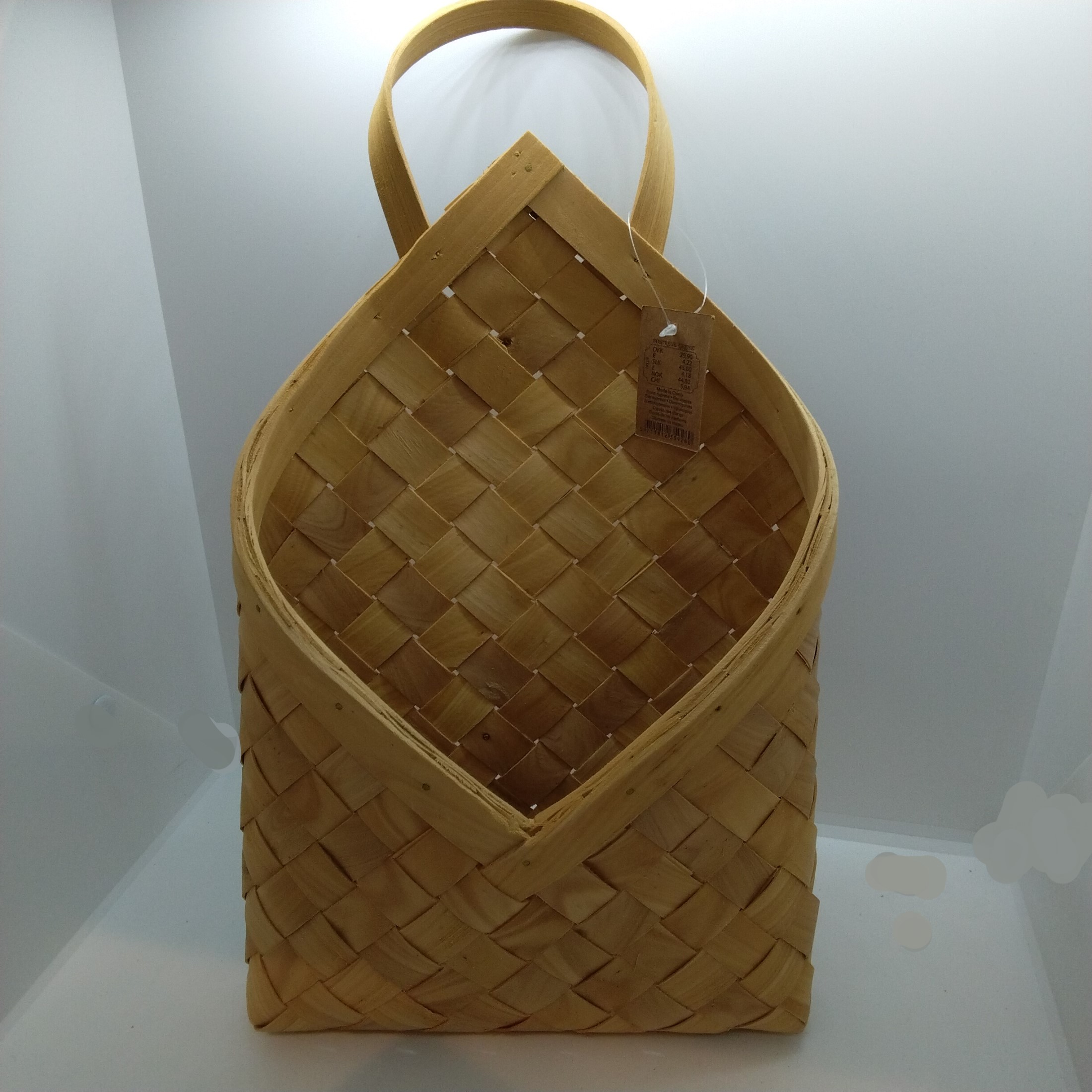 Korg i näver med ”handtag” för upphängning, bredd ca 23 cm, höjd ca 33 cm