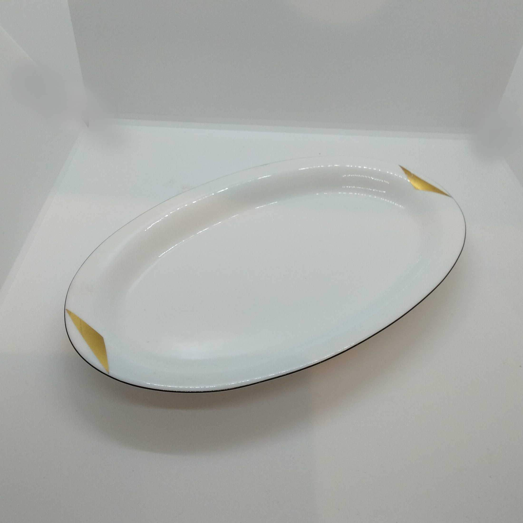 Ovalt uppläggningsfat, 30*18,5 cm, helt i glasyr, dekorslitage 50:-