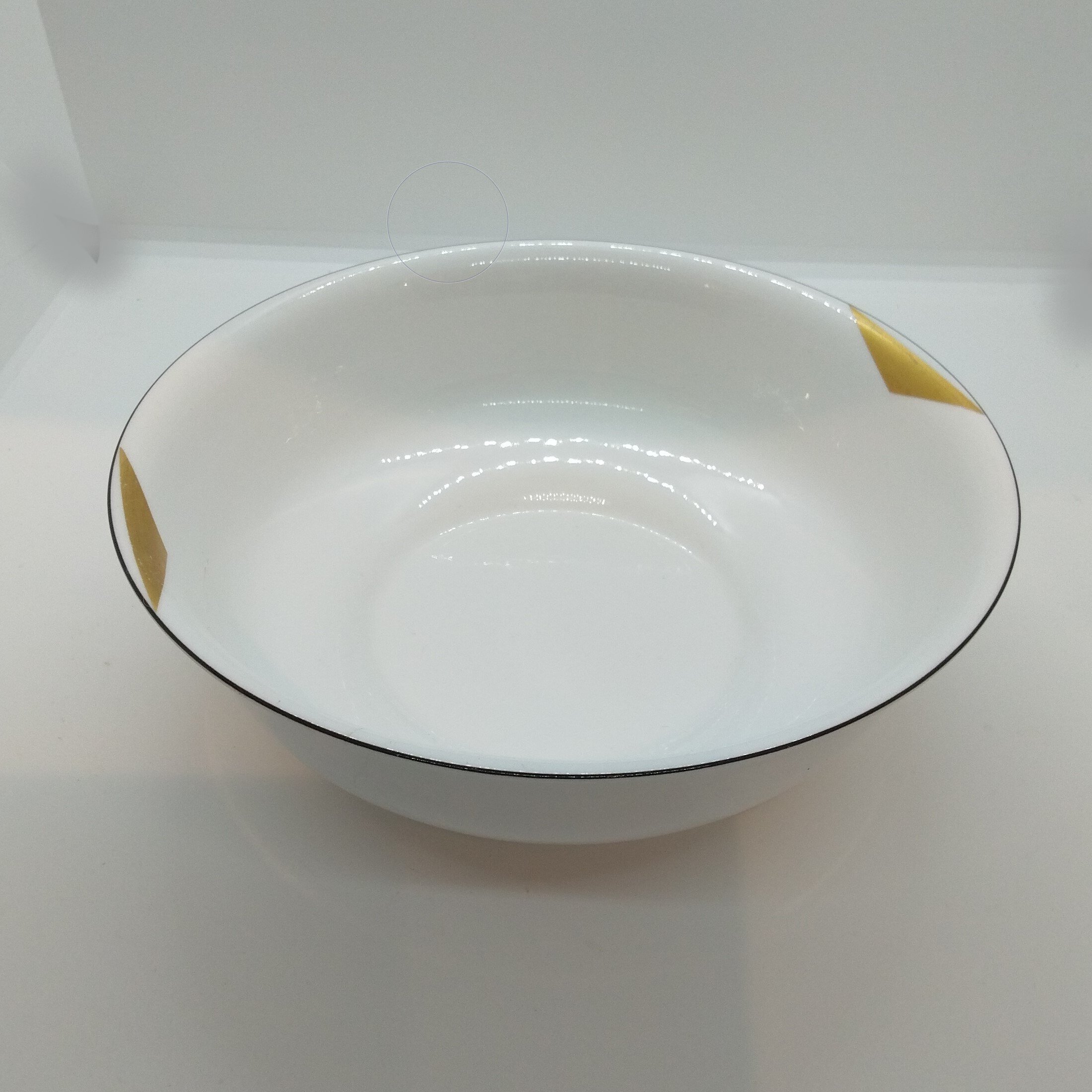 Skål, ø 20 cm höjd 7 cm, hel glasyr ngt dekorslitage 60:-