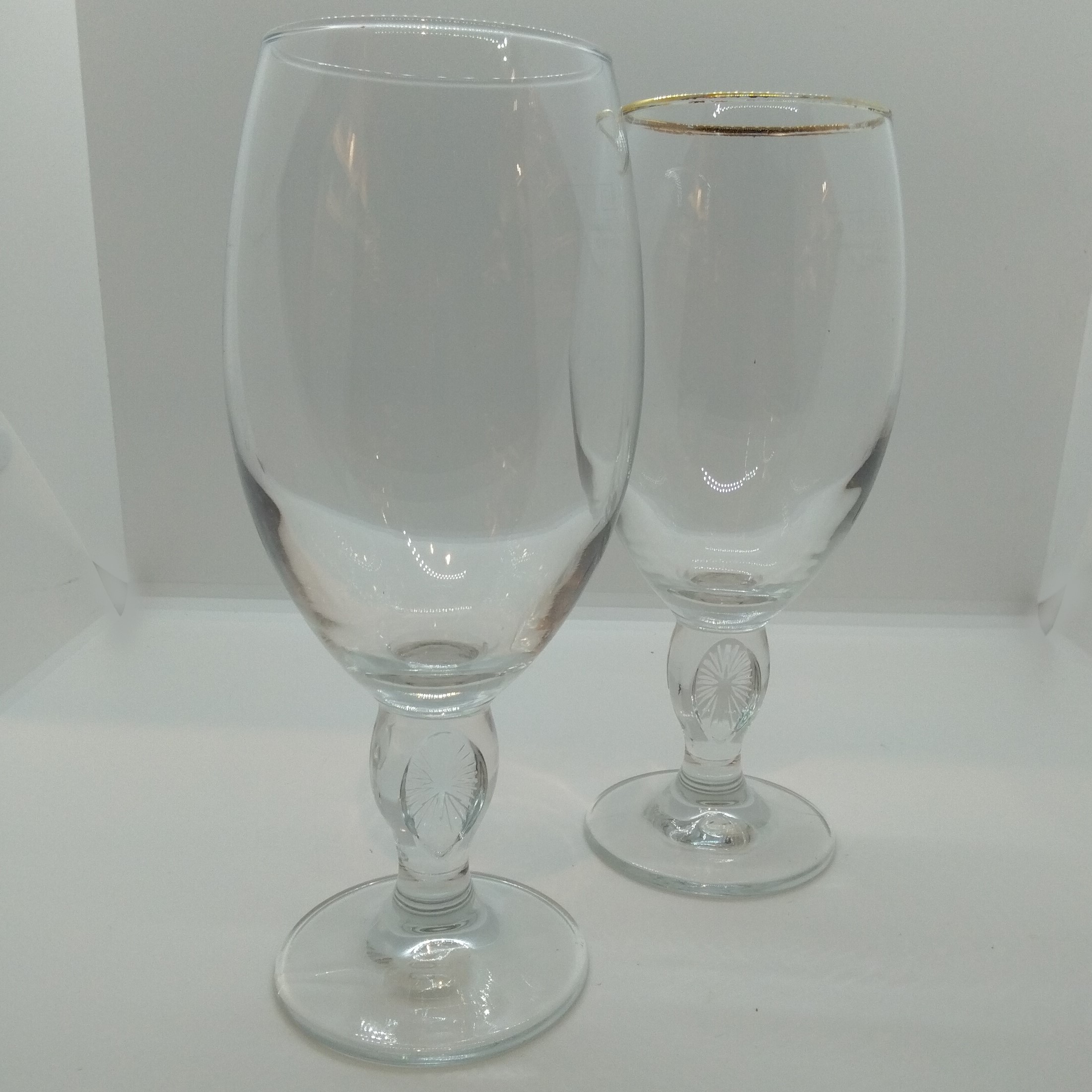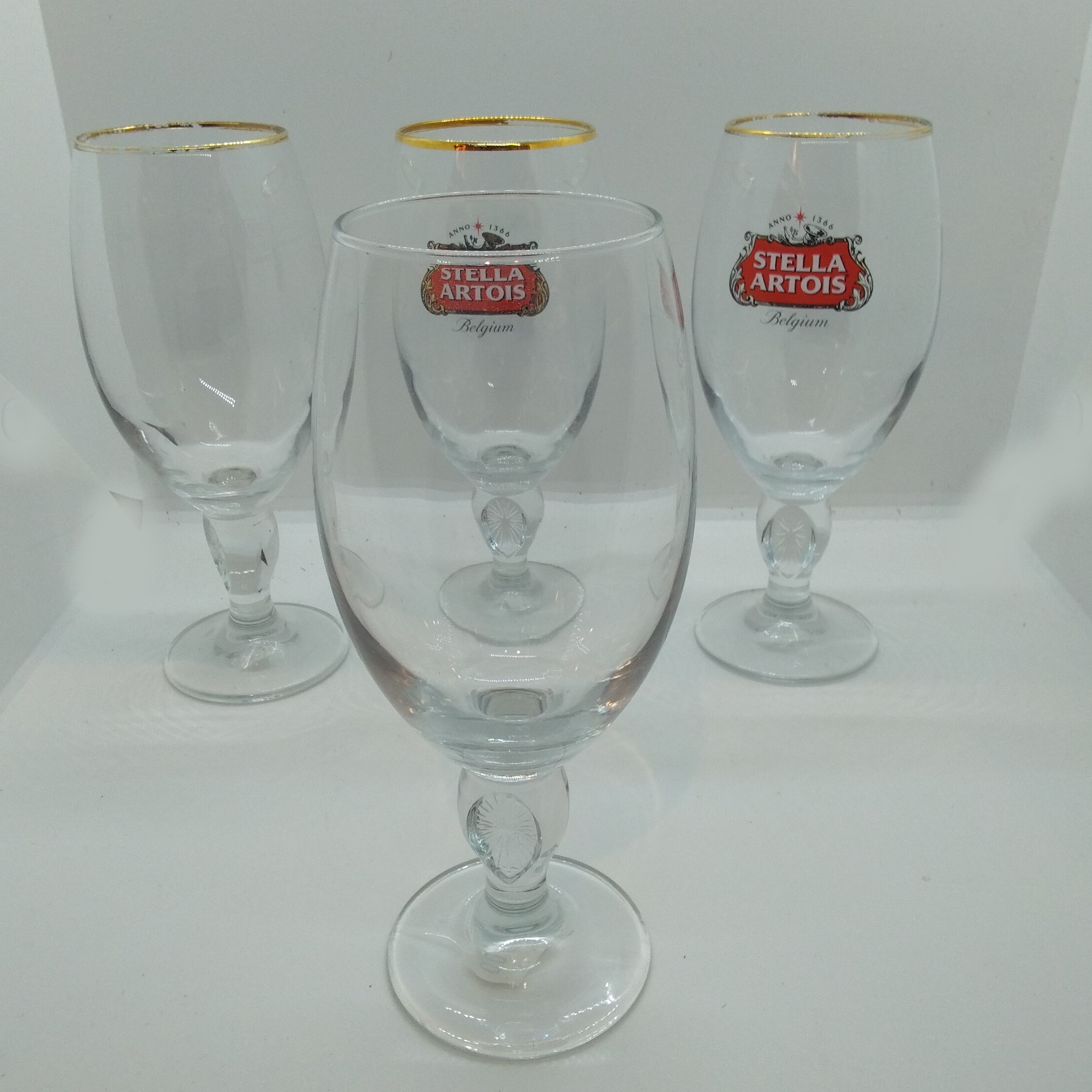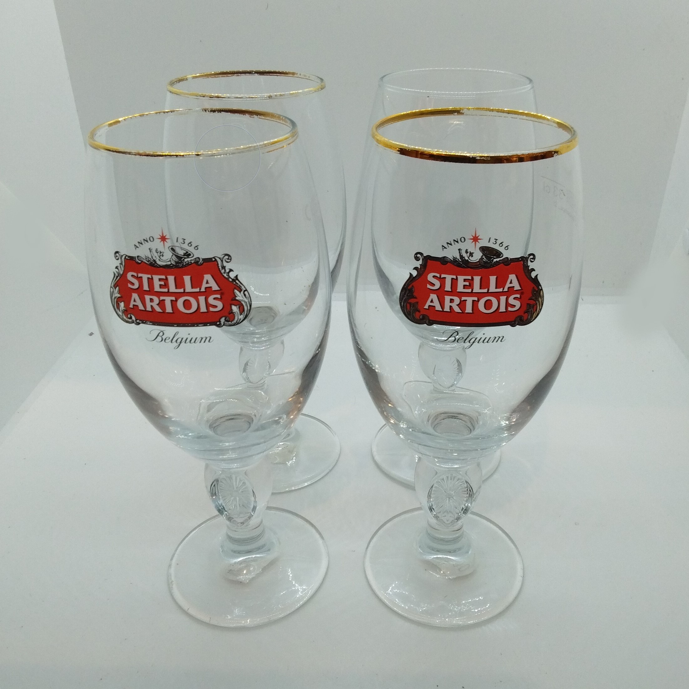 Ölglas ”Stella Artois” (Belgien), ett icke speciellt hållbart märke då det inte tåler maskindisk. Formen som sådan är perfekt för en (iskall) öl, men som sagt– glasen har mist sin guldglans. Hade tänkt mig 5:-/st, meeen…