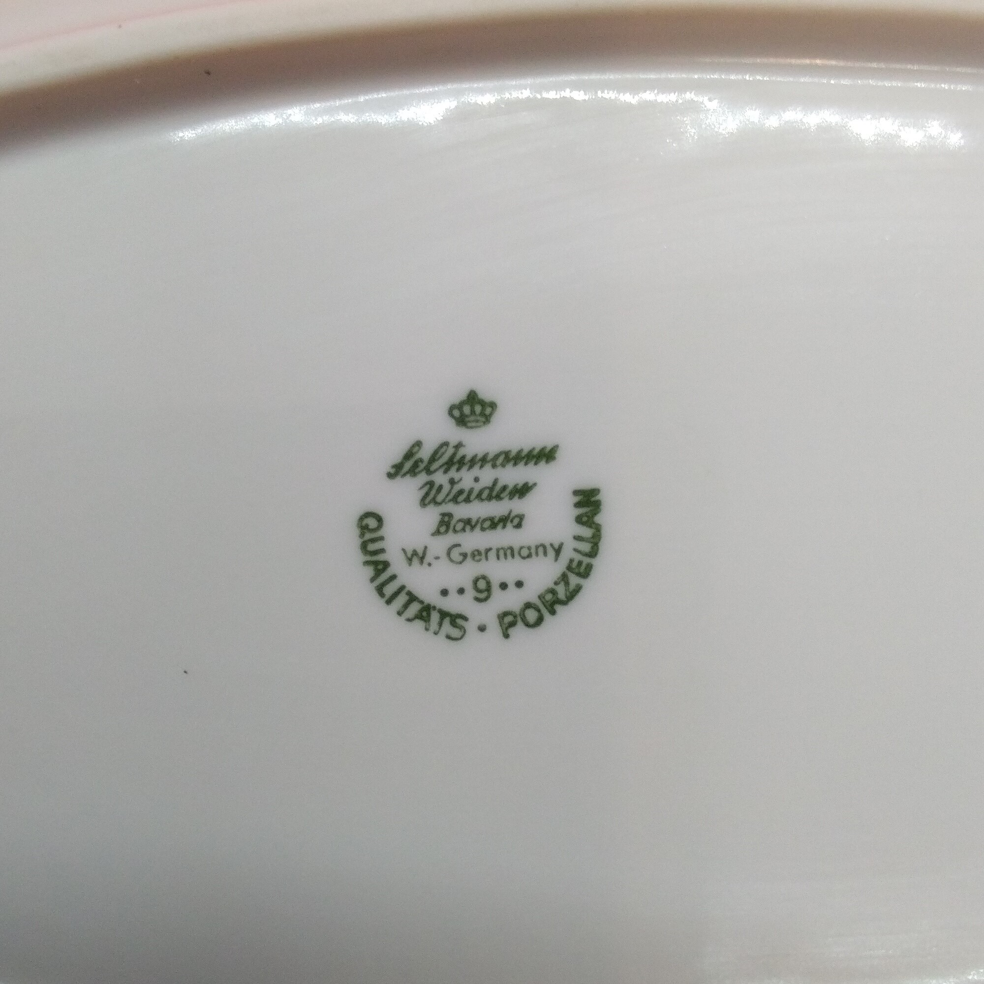 Ovalt uppläggningsfat i porslin med något högre kant (kompottfat) ”Selhmann Weiden Bavaria W Germany Qualitäts Porzellan”, Längd 24 cm, bredd 13 cm, felfritt!