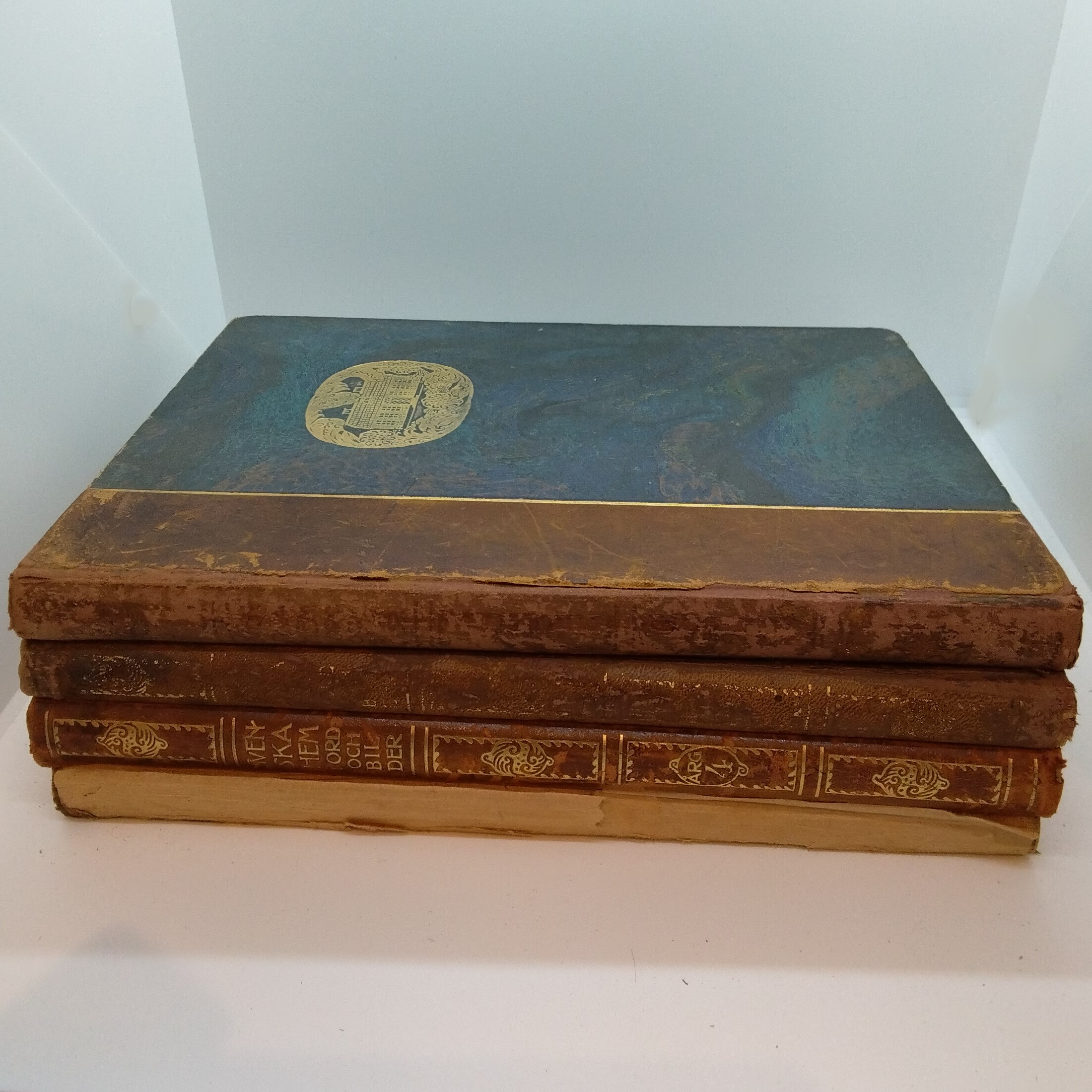 Fyra årgångar, 1914-1917,  av Svenska hem i ord och bilder [Albin Roosval, red], fyra band II-V. Ryggen illa åtgången på V.