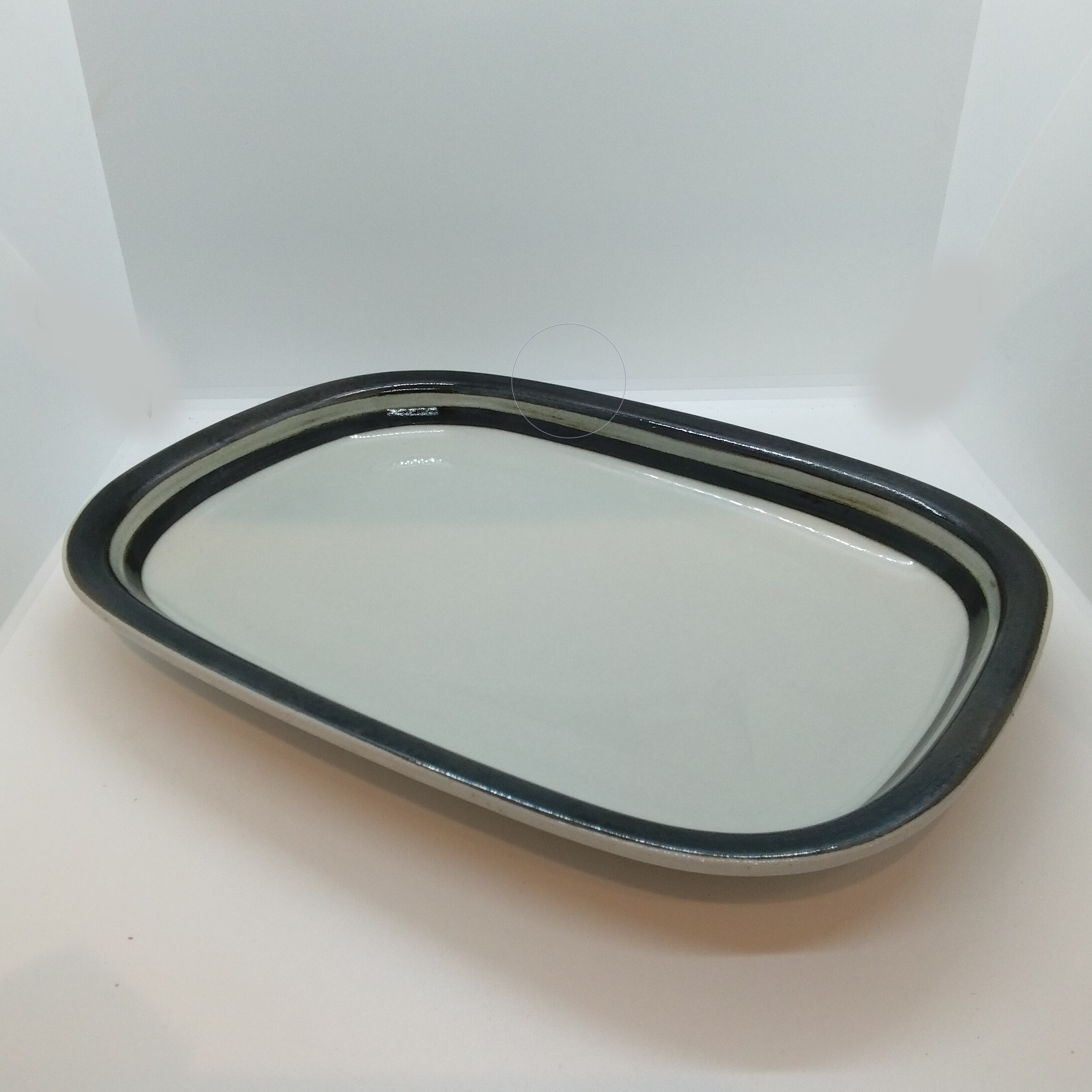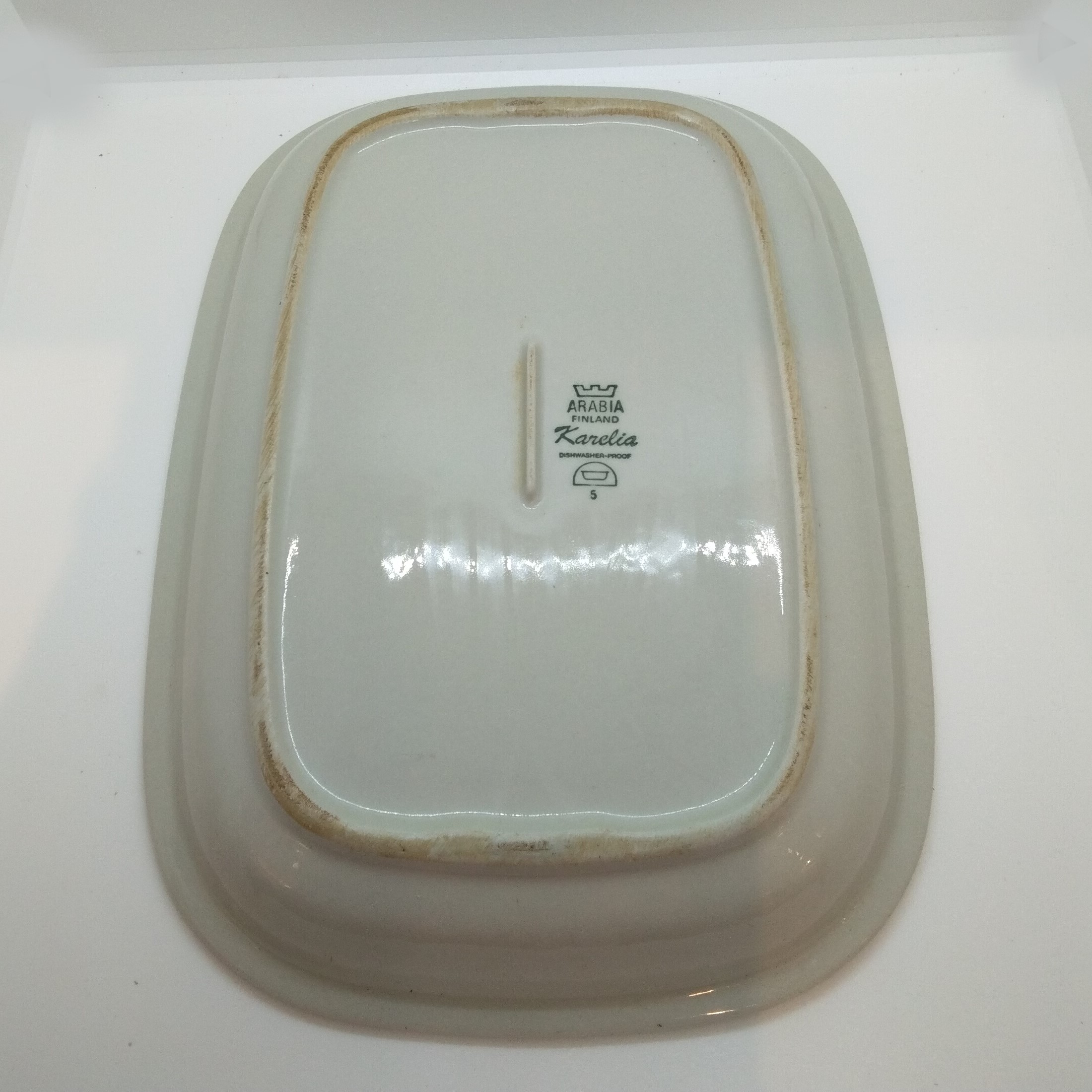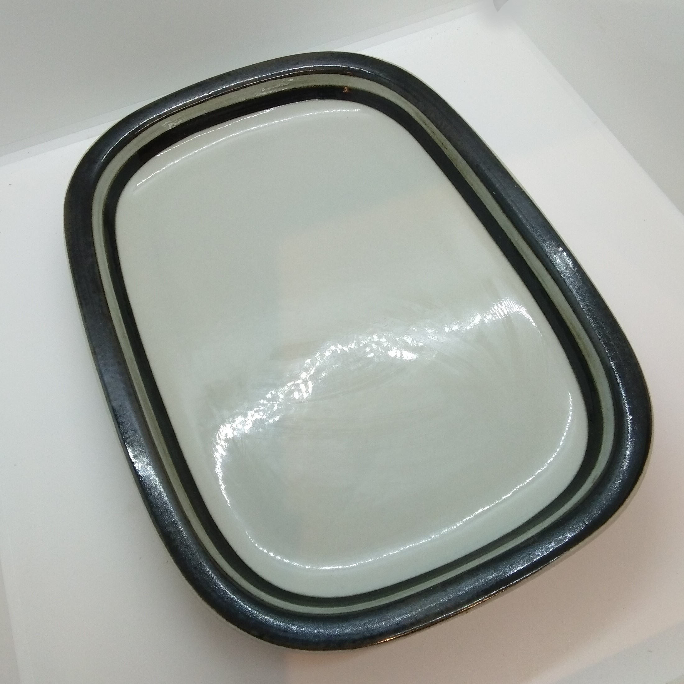 Rektangulärt uppläggningsfat ”Kardia” från Arabia, Finland. Längd 34 cm, bredd 24,5 cm, tål maskindisk, felfritt.