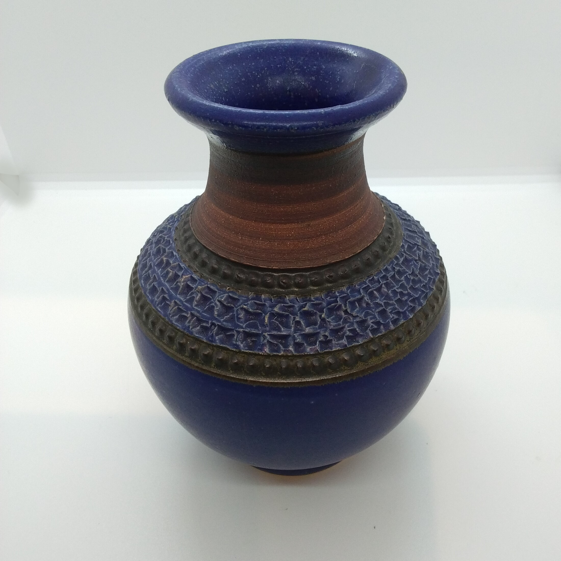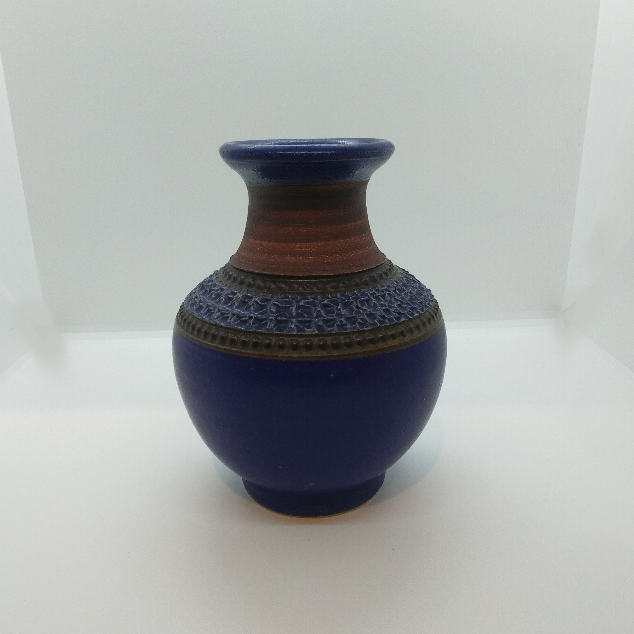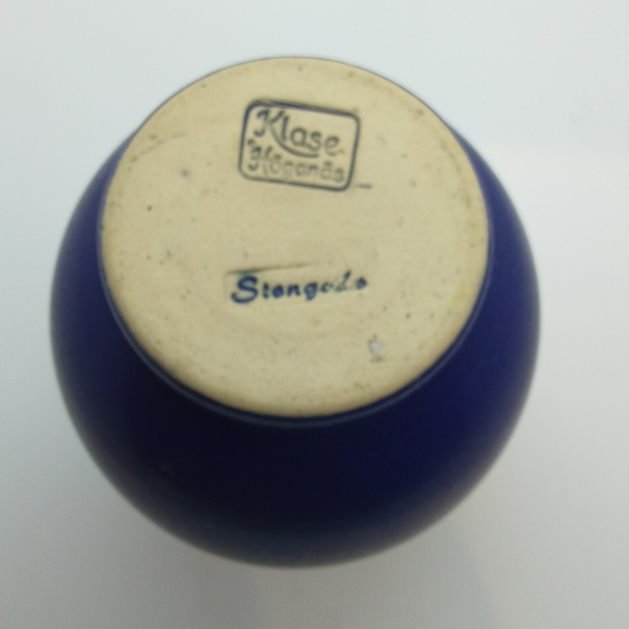 Vas i keramik från Höganäs, märkt ”Stengods” ” Klase”, Otto Klaesson, Klas-Göran Klaesson (Klase J:r). Höjd ca 16 cm, ø ca 13 cm, ngt litet märke i glasyren – inga naggar!