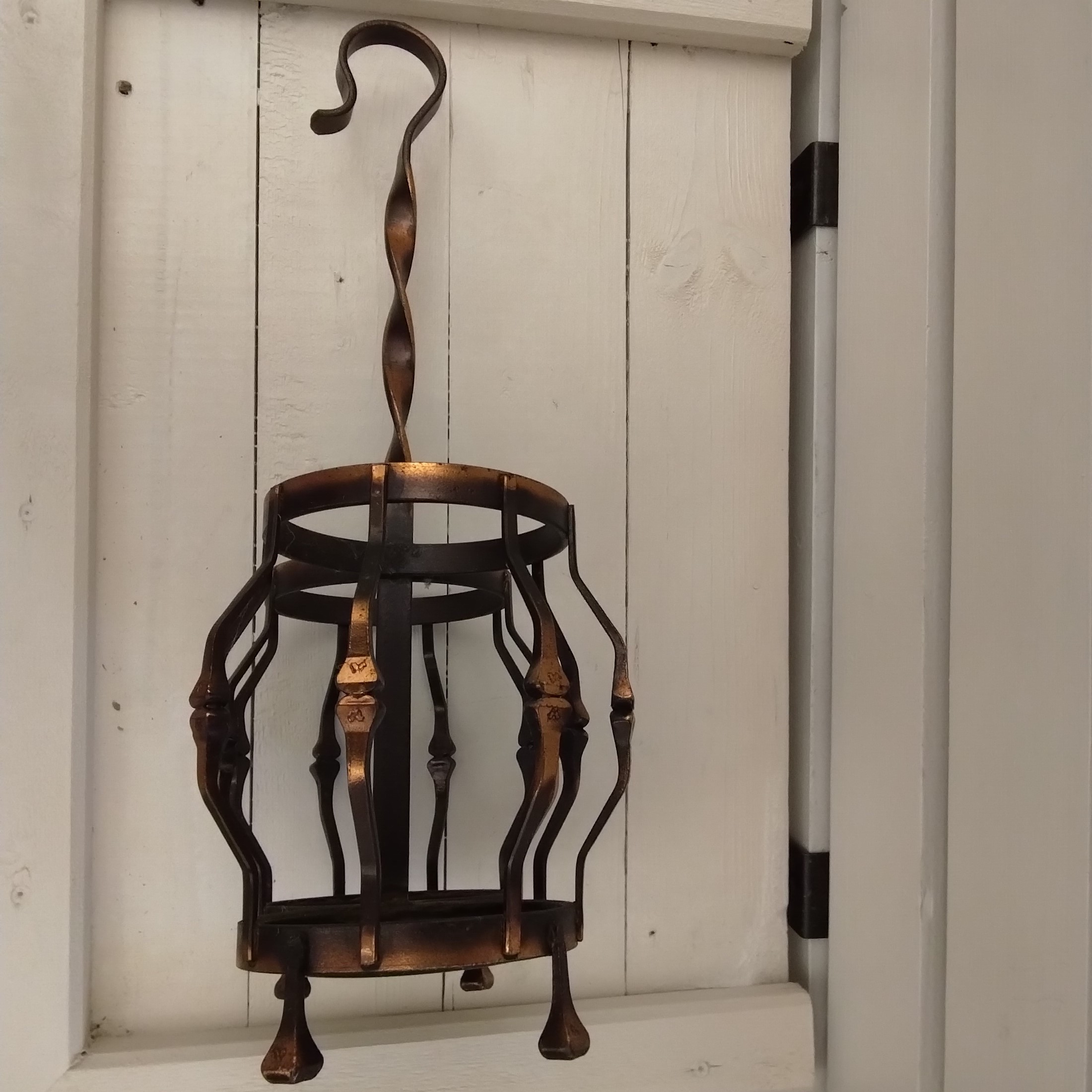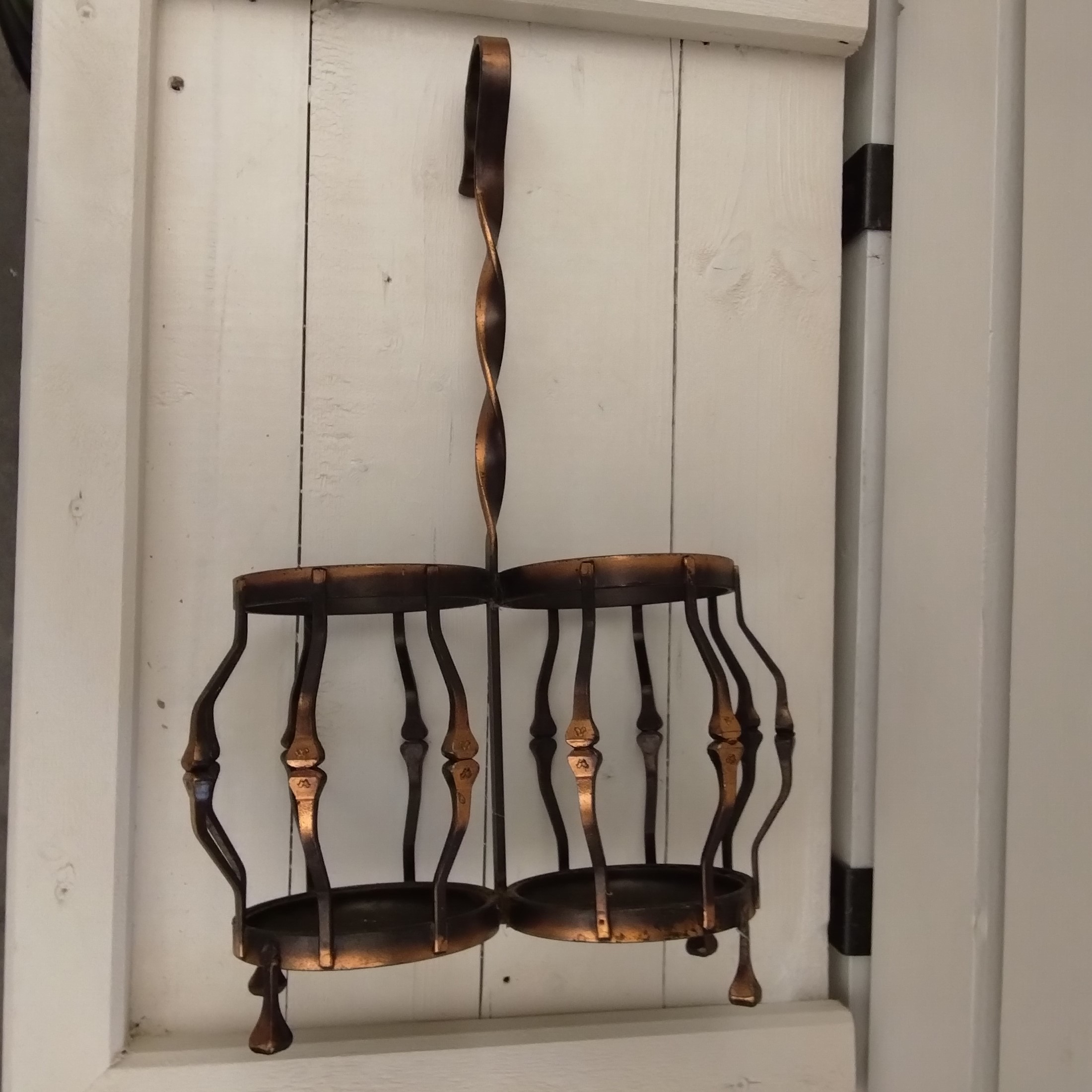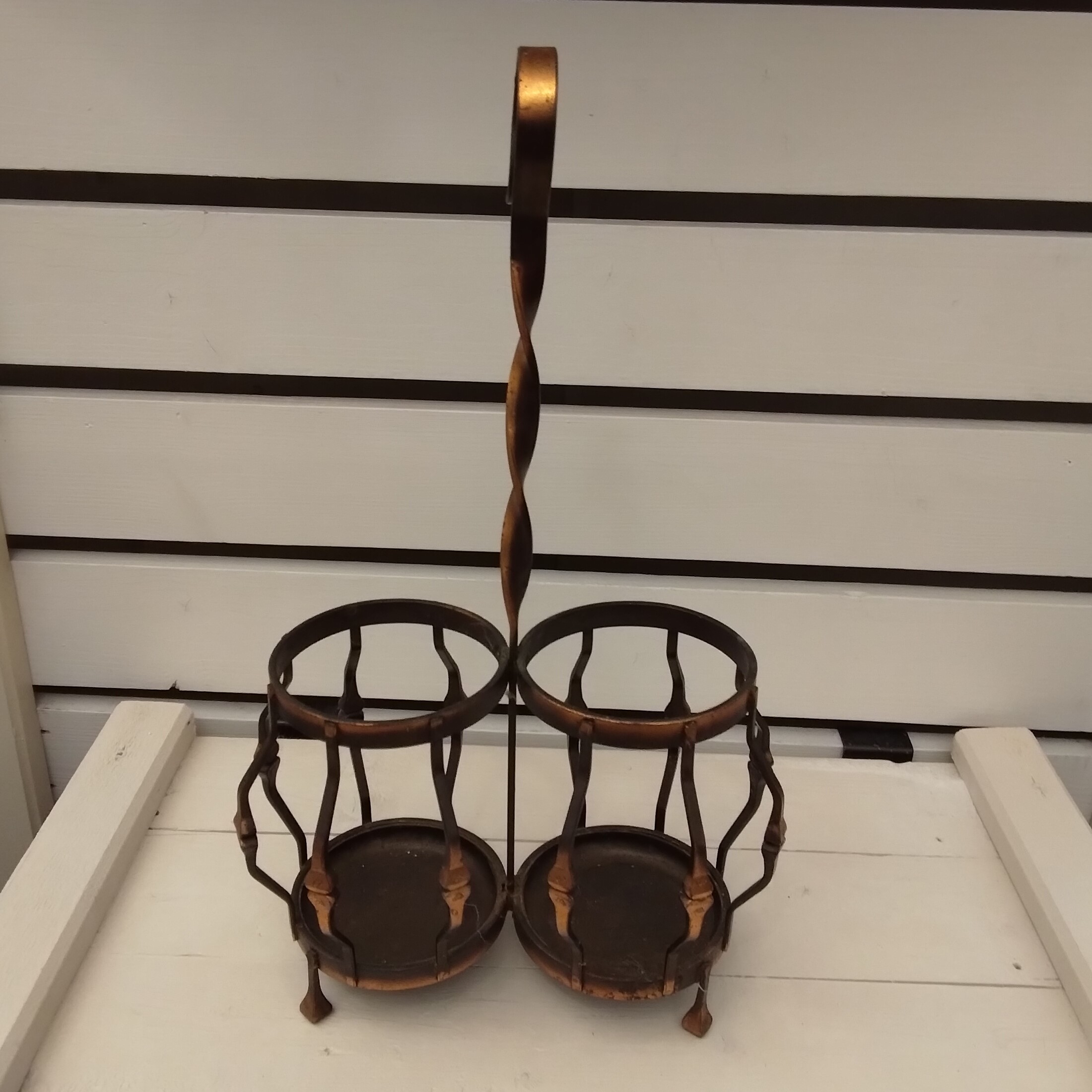 Vinställ för två flaskor, kopparfärgad hästskosöm, smide, höjd ca 39 cm, bredd ca 23 cm.