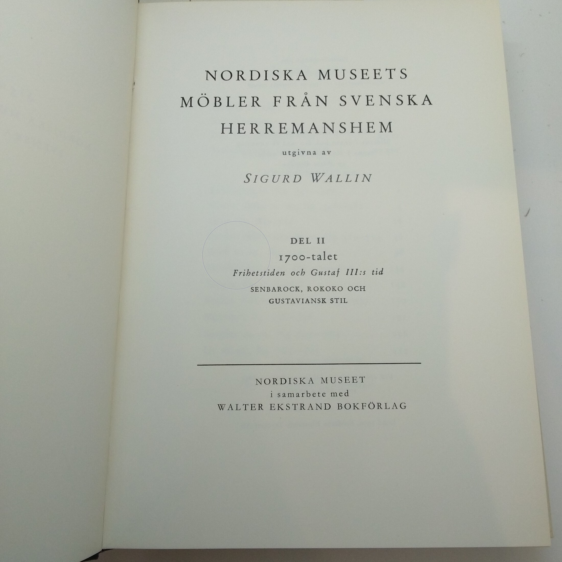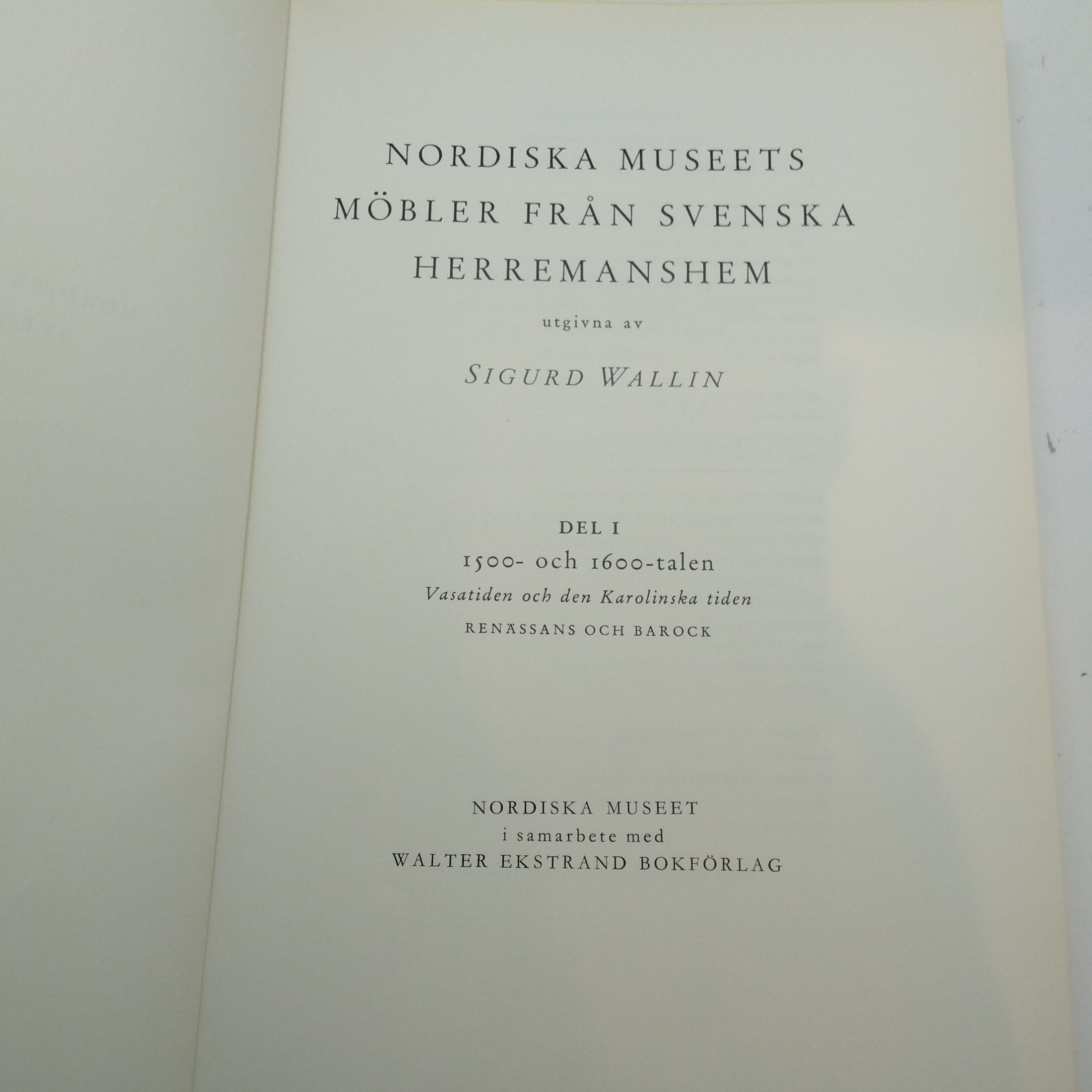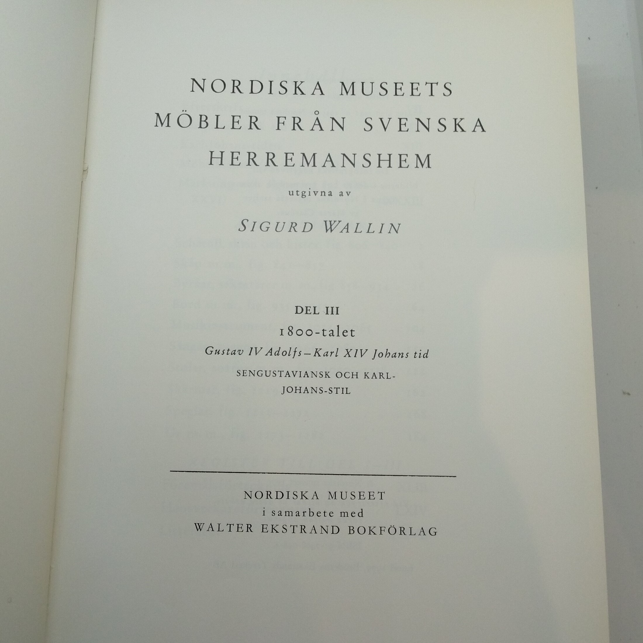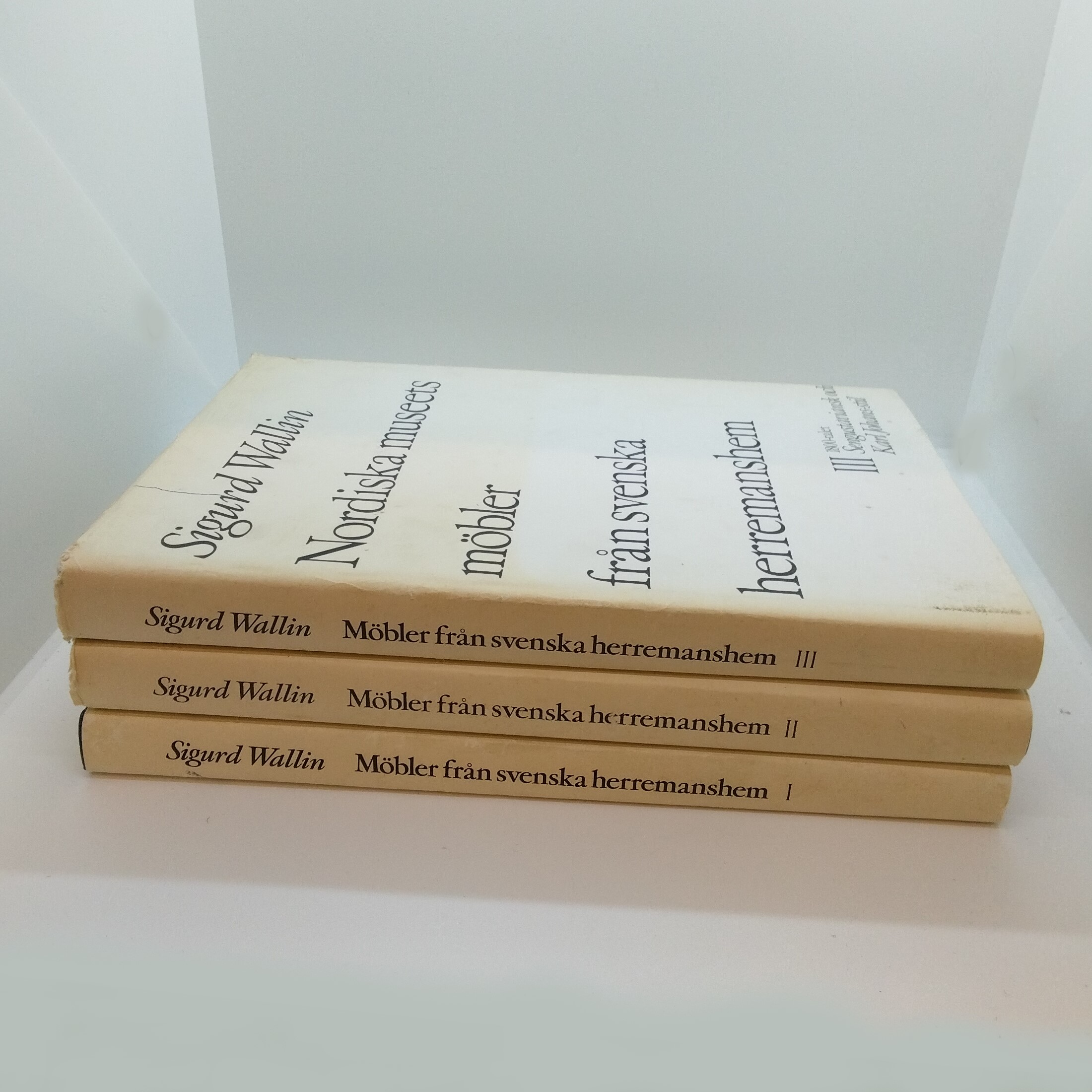 Nordiska Museets möbler från svenska herremanshem, vol I-III, av Sigurd Wallin. Faksimilupplaga, Walter Ekstrands Bokförlag 1979. Ett uppslagsverk för alla älskare av möbler från Sveriges historia. Omslag slitna, i övrigt u a.
